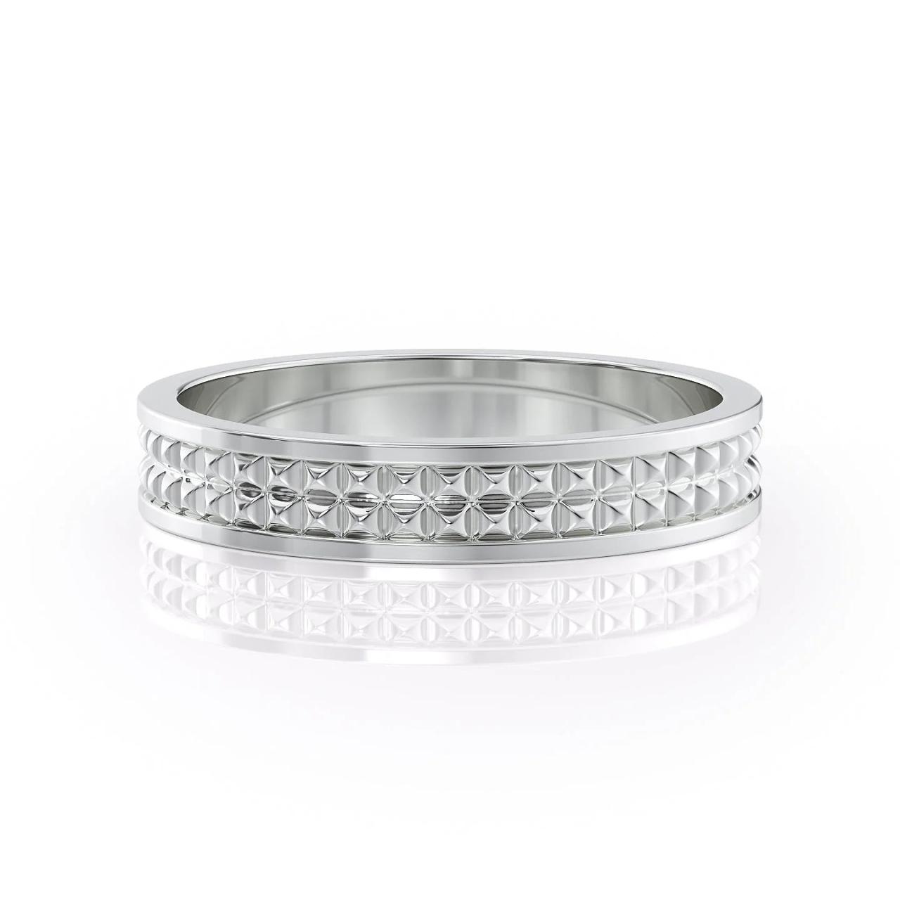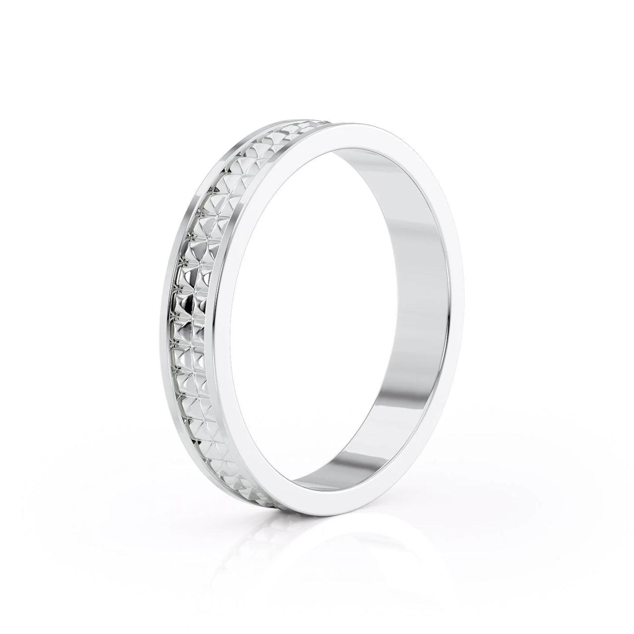 For hardworking hands (think construction, woodworking, etc.), a more simple, or at least diamond-free band might be the best fit.