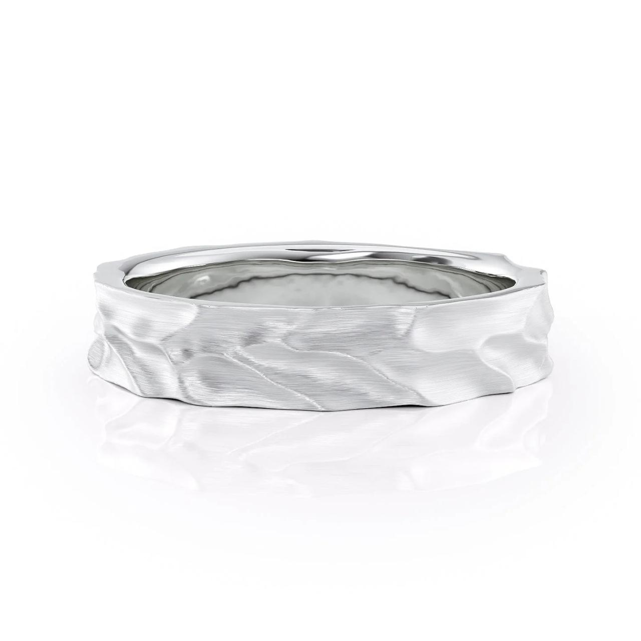 The peaks and valleys play off the light giving the piece tons of movement while keeping it totally modern. It’s a great fit for men who are, after that rugged feel, wrapped in a refined wedding band.